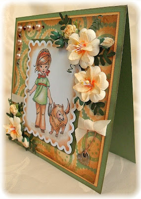 Det var gøy, vi har begge jente med hund-kort i dag og med samme layout nesten også. Men likevel helt forskjellige. Det var et nydelig kort Aud, skjønne varme farger og vakkert fargelagt som vanlig.